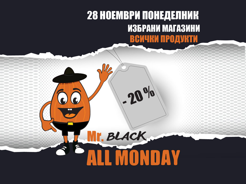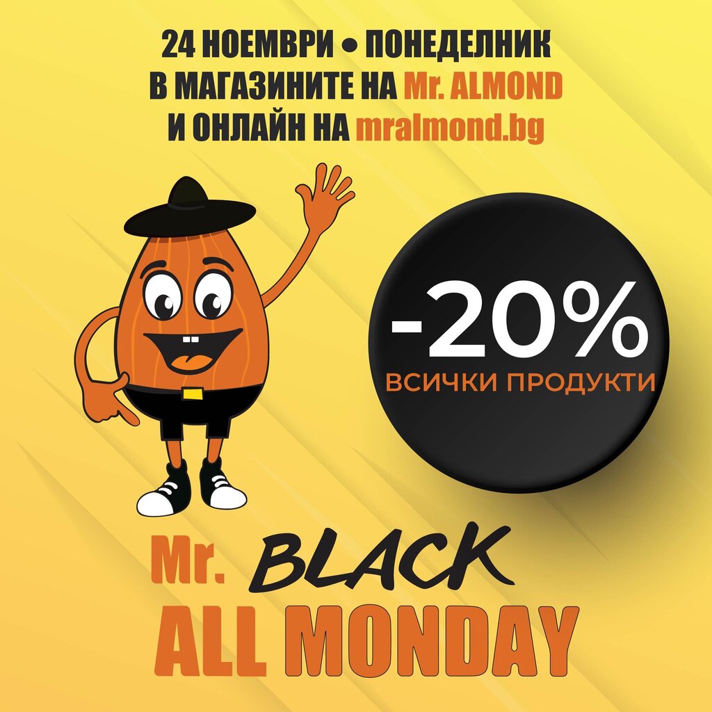 27 окт. 20% отстъпка на всички продукти онлайн и в избрани магазини Mr. Almond! Запознайте се с Mr. Black… Mr. Black ALLMONDay!Седмицата се познава по понеделника! Затова на 28-ти ноември обявяваме Черен понедел... Продължете да четете