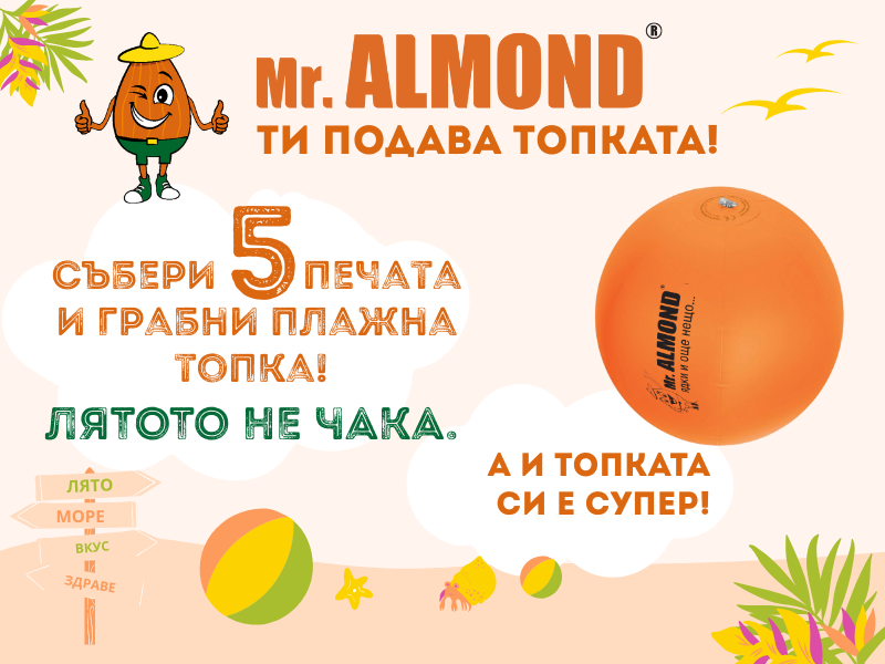 Лятото вече се усеща, а Mr. Almond има страхотна изненада за всички свои верни клиенти. Даваме старт на нова забавна кампания под името „Mr. Almond ти подава топката“, с която пазаруването става още по-вкусно и игриво!