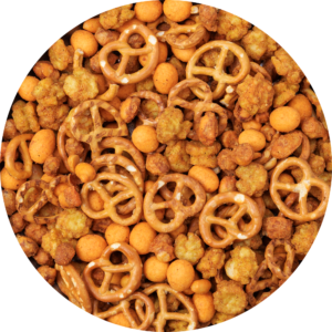 Bretzel Crunch комбинира гарнирани фъстъци, бретцели и оризови крекери, овкусени с къри крекери. Това създава балансиран вкус между солено и леко пикантно. Микс от фъстъци, бретцели и оризови крекери. Има приятен къри вкус и разнообразна текстура.