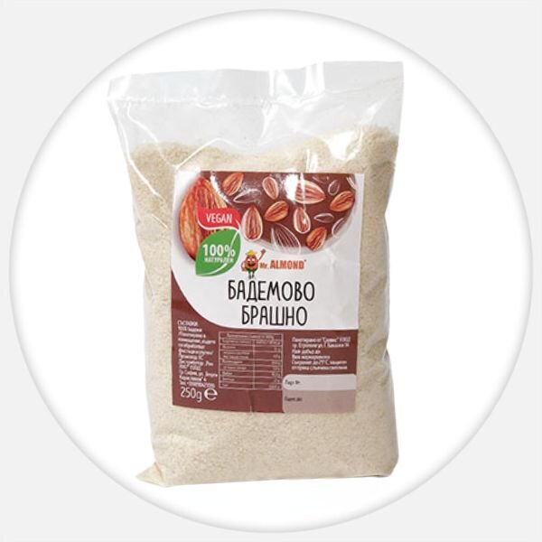 - Натурален продукт, получен чрез фино смилане на сурови ядки от бадем.